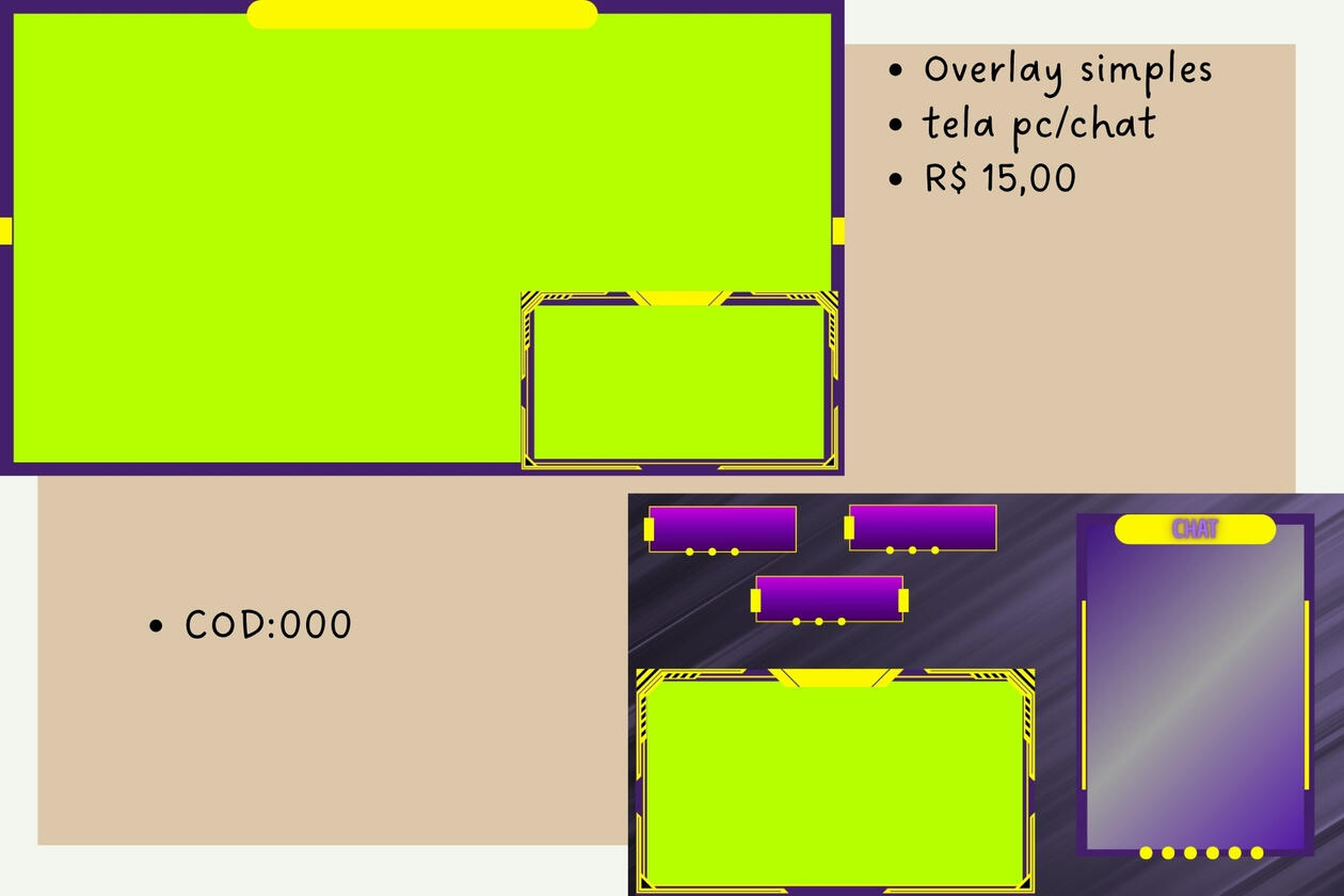 Destaque sua stream com overlays únicos e feitos sob medida! Aqui você encontra overlays personalizados para lives na Twitch, Youtube, e outras plataformas. Cada layout é criado pensando na sua identidade visual, deixando sua transmissão mais profissional, atrativa e com a sua cara.