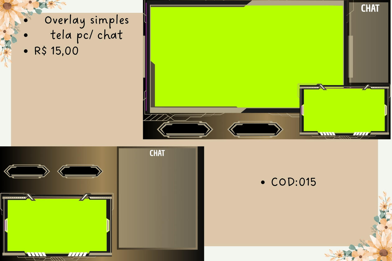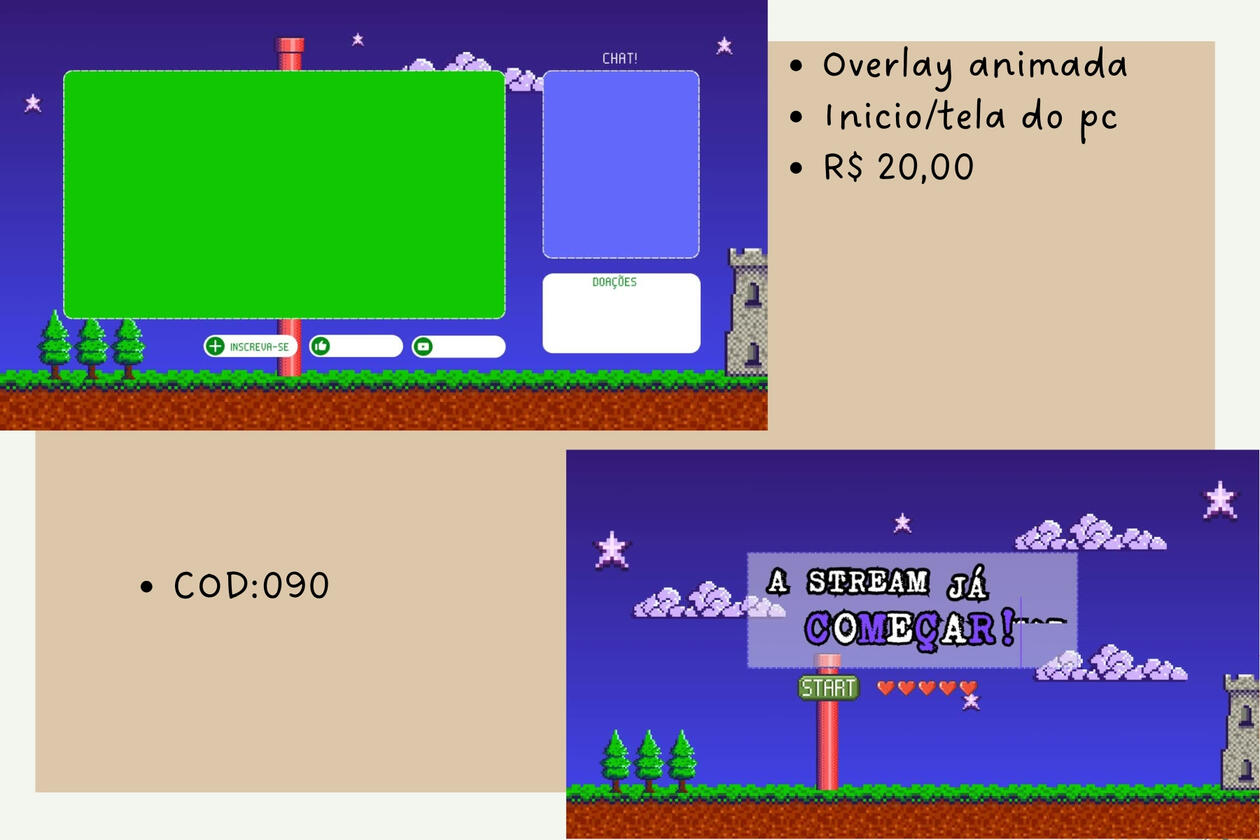 Destaque sua stream com overlays únicos e feitos sob medida! Aqui você encontra overlays personalizados para lives na Twitch, Youtube, e outras plataformas. Cada layout é criado pensando na sua identidade visual, deixando sua transmissão mais profissional, atrativa e com a sua cara.